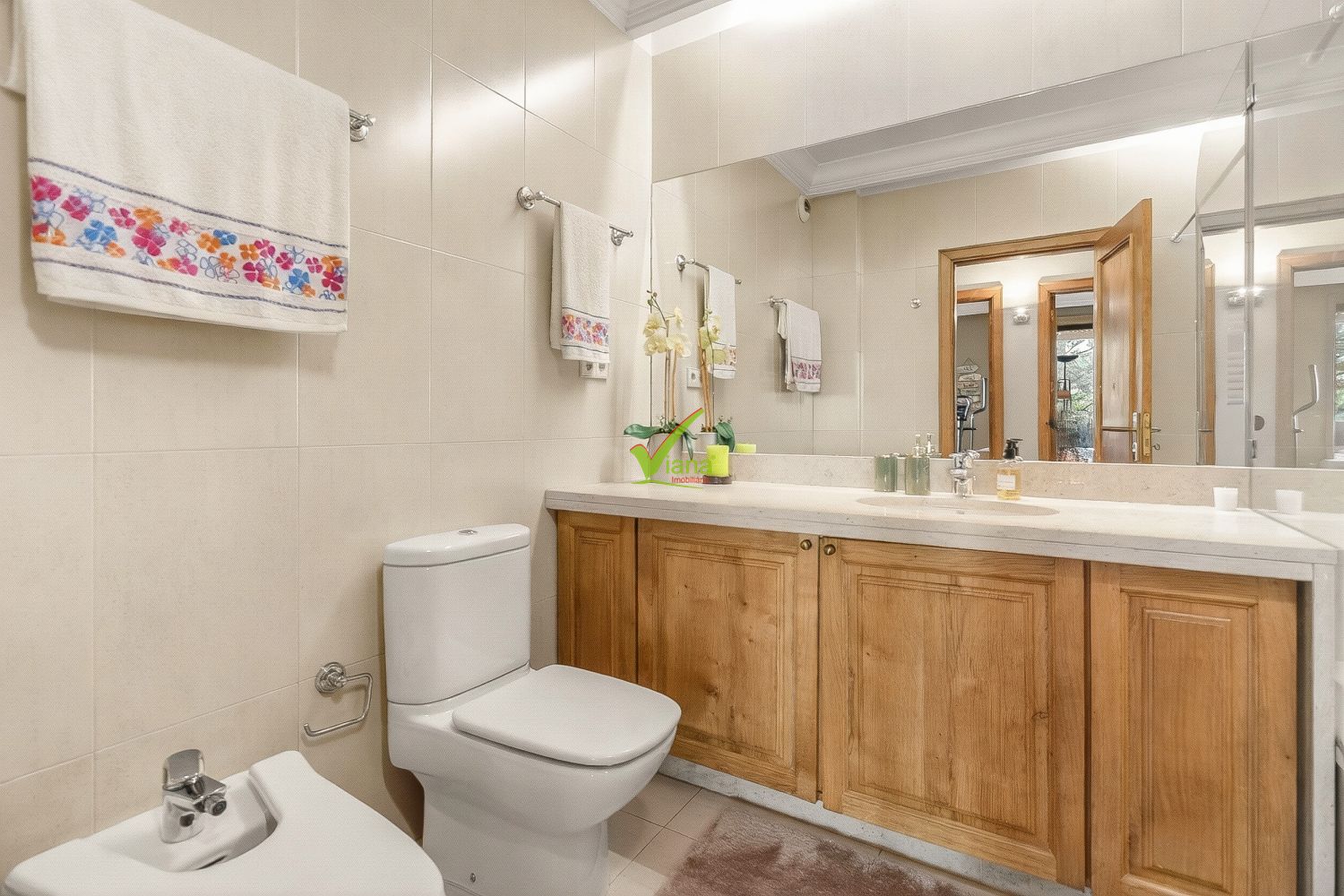T. 4 com 3 lugares de garagem e arrumos Localização Premium na cidade da Maia Edifício de apenas 3 andares, com elevador Apartamento com 3 frentes Sala comum com recuperador de calor e acesso a grande varanda de gaveto Cozinha com zona de lavandaria 4 quartos com roupeiros embutidos, sendo 1 suite com closet 3 casas de banho ( 1 serviço na zona social e 2 completas, tendo o wc da suite luz direta ) Pavimento em soalho maciço Aquecimento central completo Gás canalizado Dupla caixilharia Vídeo-porteiro Classe energética: B Consulte-nos a agenda a sua visita! ******************** VIANA Imobiliária - PAULINO TORRES - Sociedade de Mediação Imobiliária, Limitada Licença AMI 1694, Associado APEMIP 62 Estamos há mais de 40 anos na Póvoa de Varzim prestando um serviço personalizado na mediação imobiliária! Ao longo destes anos os nossos clientes sabem, por experiência própria, que VIANA Imobiliária oferece... UMA SÓLIDA GARANTIA! Se deseja comprar ou vender o seu imóvel, com total SEGURANÇA, contacte-nos: Av. Mouzinho de Albuquerque, 719, R/C, 4.490-409 Póvoa de Varzim Tlm.: (+351) 914.146.112 (chamada para rede móvel nacional) VIANA Imobiliária de PAULINO TORRES... Desde 1984, a sua imobiliária de confiança! ******************** Póvoa de Varzim é uma cidade portuguesa na Região Norte (sub-região do Grande Porto e Área Metropolitana do Porto) situada numa planície costeira arenosa, a meio caminho entre os rios Minho e Douro e com 40 053 habitantes no seu perímetro urbano. É sede de um município com 82,21 Km² de área e com 63 408 habitantes (2011). A cidade expandiu-se, a sul, para Vila do Conde, formando o conjunto uma aglomeração urbana de 100 000 habitantes, a sétima maior em Portugal e a terceira do Norte. É um dos pólos urbanos do Norte de Portugal e centralidade dos concelhos vizinhos de Vila do Conde e Esposende. As primeiras populações fixaram-se no seu território entre quatro a seis mil anos atrás. Por volta de 900 a.C., a instabilidade na região levou à fundação de uma cidade muralhada, a Cividade de Terroso, que desenvolveu rotas de comércio marítimo com as civilizações da antiguidade clássica. A Póvoa de Varzim moderna emergiu depois da conquista da cividade pela República Romana por volta de 138 a.C., a pesca e unidades de processamento de peixe desenvolveram-se pouco depois, constituindo as bases da economia local. Pelo século XI, a indústria pesqueira e campos férteis formaram a base de um senhorio feudal e Varzim foi ferozmente disputada entre os senhores locais e dos regionais, os primeiros reis de Portugal, o que levou à criação do município em 1308 e ser submetida ao poder monástico medieval poucos anos depois. A importância da Póvoa de Varzim reemergiu com a Época dos Descobrimentos devido à competência e riqueza dos seus construtores navais e navegantes, que negociavam à volta do mundo em rotas comerciais complexas. Pelo século XVII, a indústria de transformação de pescado tomou novo alento e, algum tempo mais tarde, a Póvoa tornou-se no porto pesqueiro dominante no Norte de Portugal. A cidade da Póvoa de Varzim é uma reconhecida cidade balnear desde há três séculos, a mais popular no Norte de Portugal, o que instituiu uma cultura literária influente e patrocínio na música e no teatro. É uma das poucas zonas de jogo legal em Portugal e possui indústrias têxtil e alimentar significativas. A cidade mantém uma identidade cultural própria, uma cozinha piscatória rica e tradições antigas, tais como siglas poveiras, a técnica agrícola das masseiras e festas. Fonte: Wikipédia
